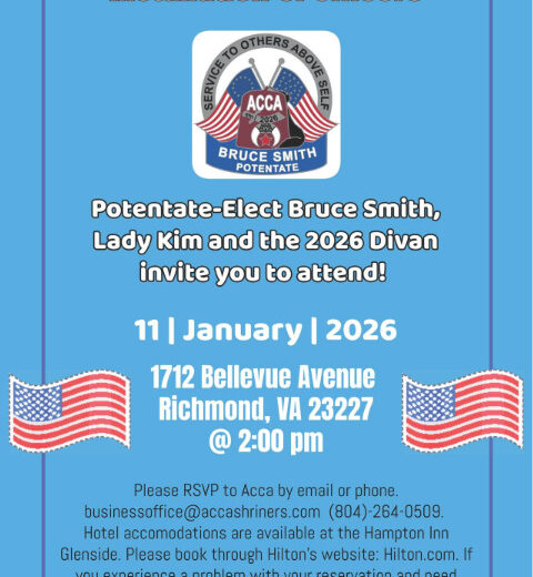 Potentate-Elect Bruce Smith, Lady Kim and the 2026 Divan invite you to attend.