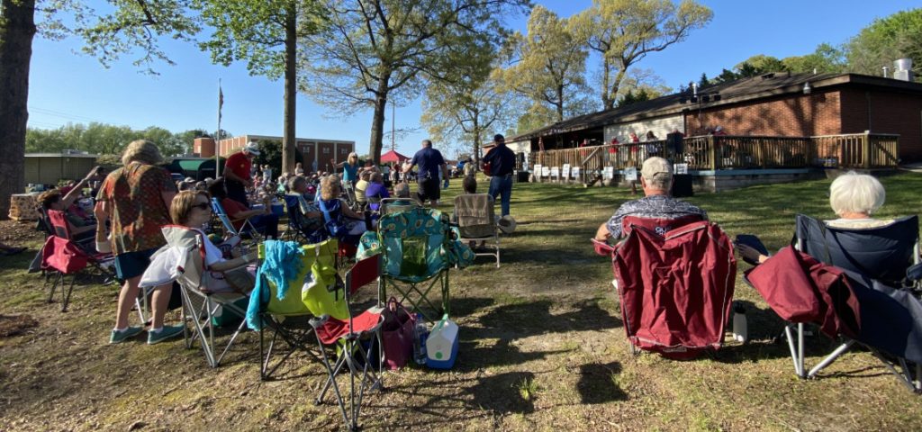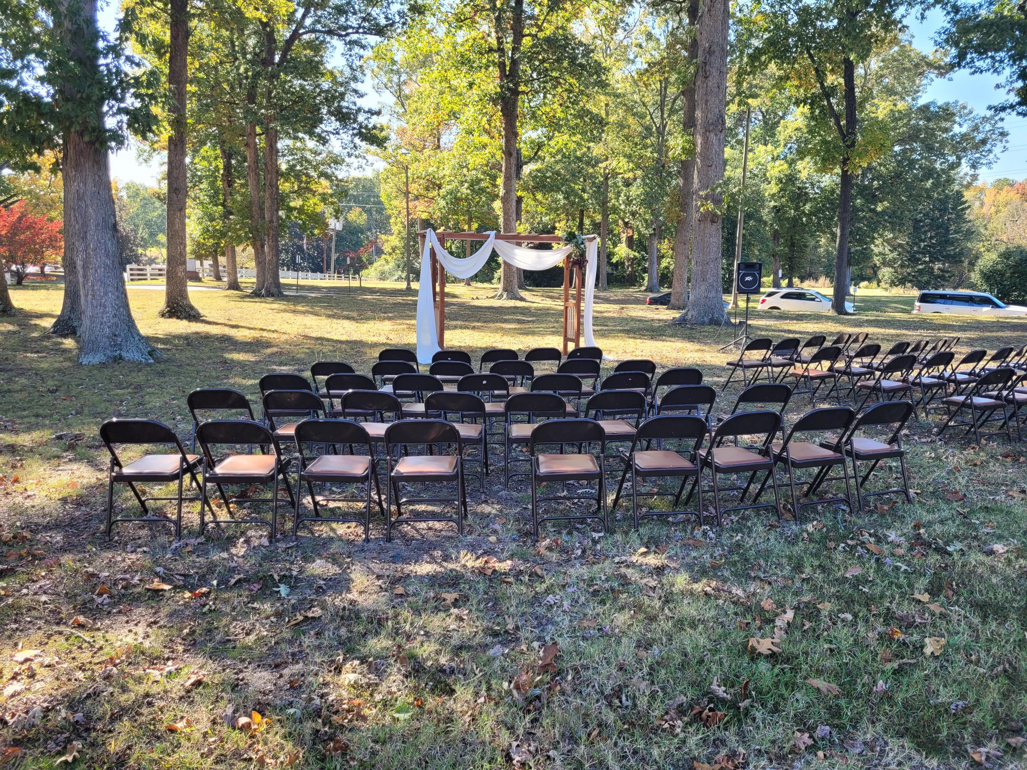 "description": "Detached space with a small kitchen, restrooms, and a raised deck overlooking a shaded lawn—ideal for casual gatherings and events that benefit from indoor and outdoor space."